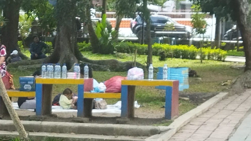 Berdasarkan pantauan di lapangan, pedagang tidak hanya berjualan di sekitar area, tetapi juga menggelar tikar di dalam kawasan taman. Tikar tersebut digunakan sebagai tempat duduk warga, yang sekaligus menjadi daya tarik agar dagangan mereka laku.